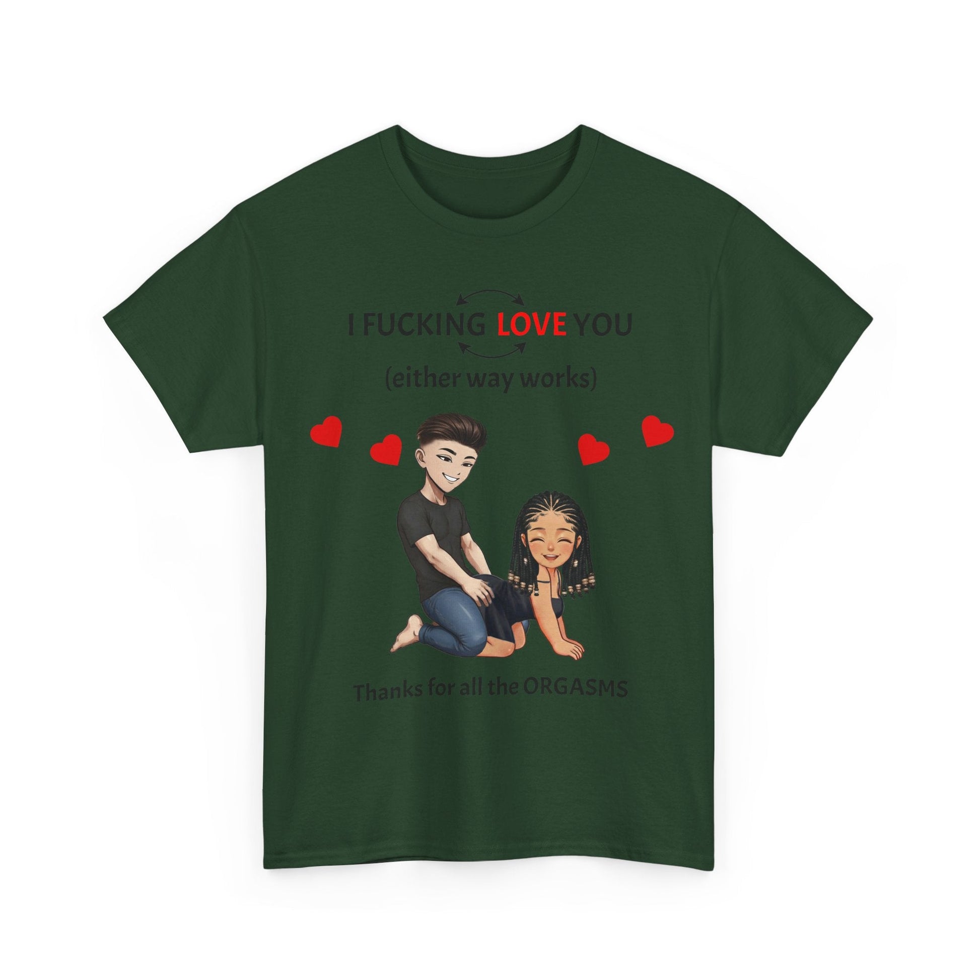 Make a bold statement with this unisex heavy cotton tee featuring the unapologetic “I F*cking Love You (Either Way Works)” design.
